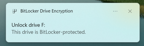 You will also likely see a notification popup that says “Unlock drive F:” that disappears in a couple seconds. It’s OK if you aren’t quick enough to click on it before it disappears.