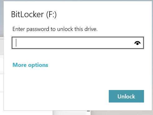 Launch File Explorer and in the left pane where it shows “This PC” which can be expanded to show the list of drives. In my case, there is a drive “Local Disk (F:)”. Click it. You should now get in the top right corner of the screen a prompt for the BitLocker password. Enter the password and click Unlock (or hit the Enter key).