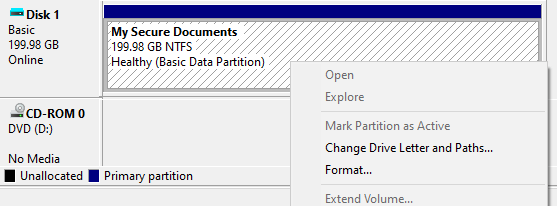 On your Windows Pro PC, in File Explorer navigate to where you saved the VHDX file (ie, “My Documents\MySecureDocuments.vhdx”). In my case the VHDX file is less than 700MB, far less than the potential maximum size I entered of 200GB.
