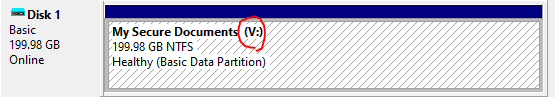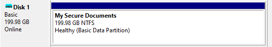 Now when you look back at File Explorer, for the VHDX it should now show your volume name (ie, “My Secure Documents (F:)”).